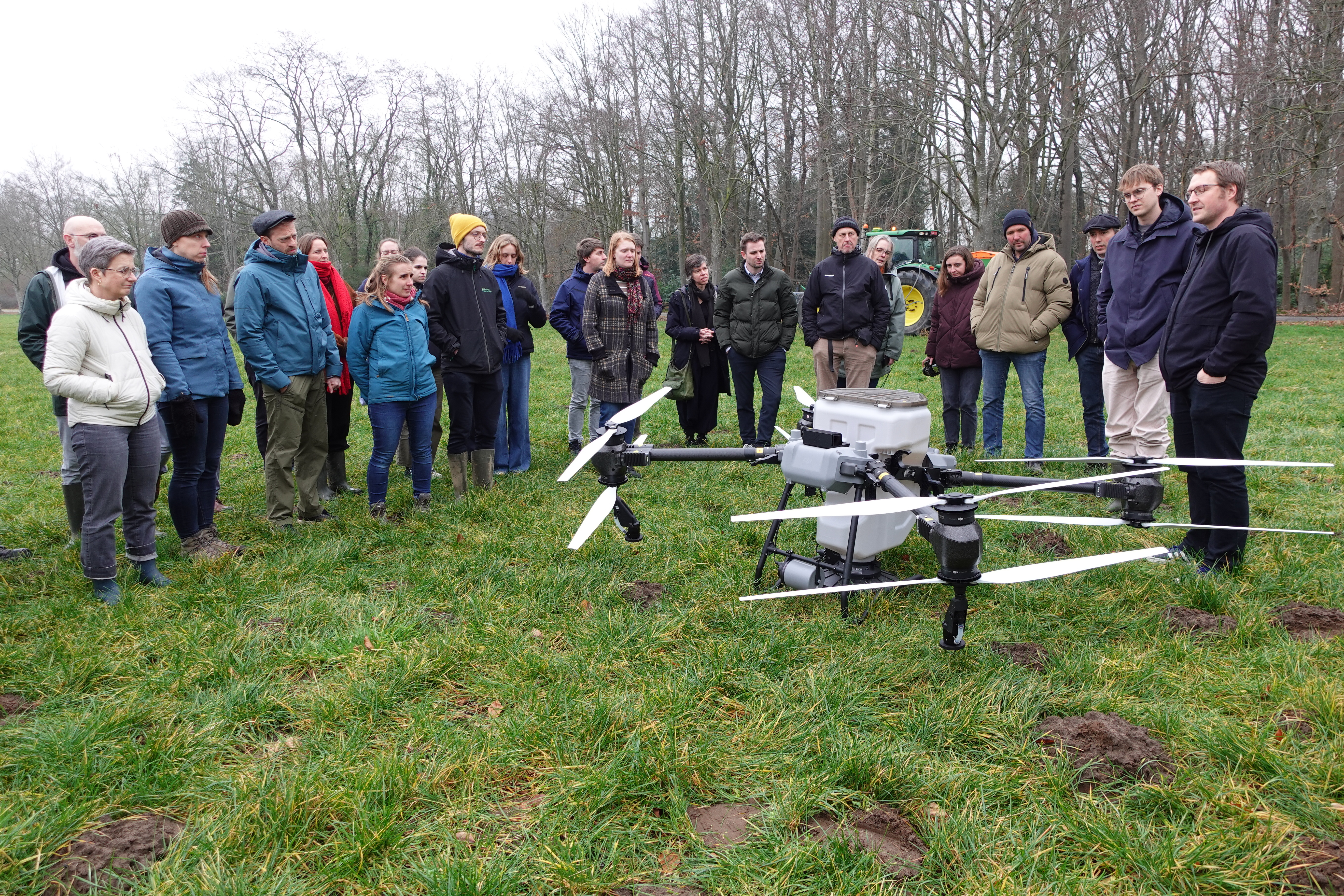 Aansluitend vond een demonstratie plaats met een strooidrone in het kader van de operationele groep Strooivlucht. Dit project onderzoekt de inzet van drones voor zaaien en bemesten en begeleidt landbouwers bij het gebruik van deze technologie. De effectiviteit en haalbaarheid van drones worden vergeleken met traditionele methoden, inclusief een analyse van strooipatronen van verschillende drones en zaadmengsels. Ook het wettelijke kader rond dronevluchten wordt daarbij helder toegelicht aan landbouwers.